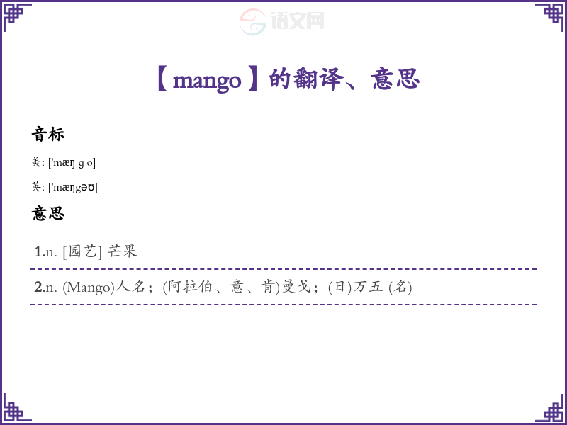 【mango】是什么意思、字义解释