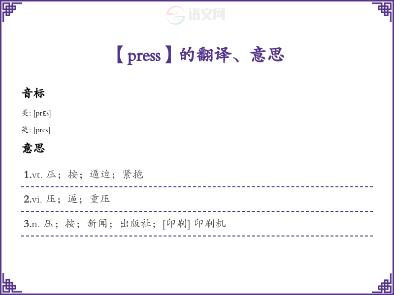 【press】的翻译、意思