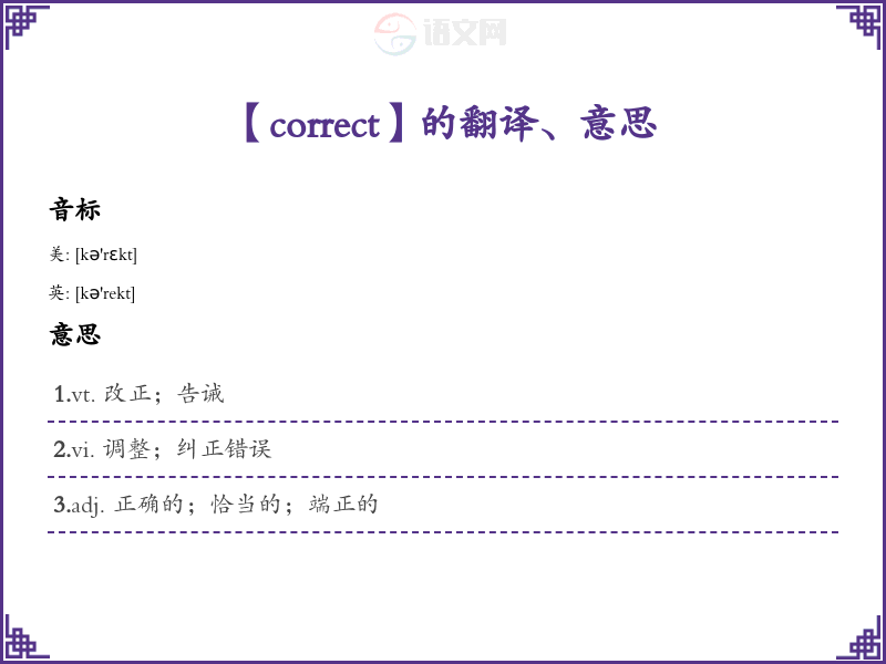 通过以上分析,可以全面理解“correct”这个单词的含义、用法及其相关知识。