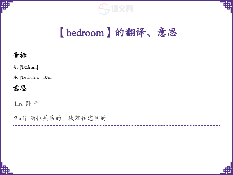 - 在**教材中,"bedroom" 通常出现在小学英语教材中(如《新概念英语》)。