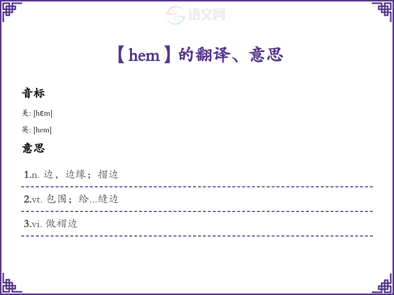 通过以上的学*与分析,相信您能更好地理解和运用“hem”这个词汇。