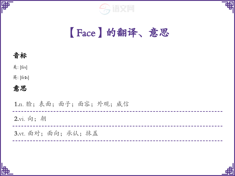 【Face】是什么意思、字义解释