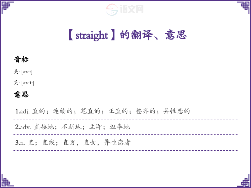 【straight】是什么意思、字义解释