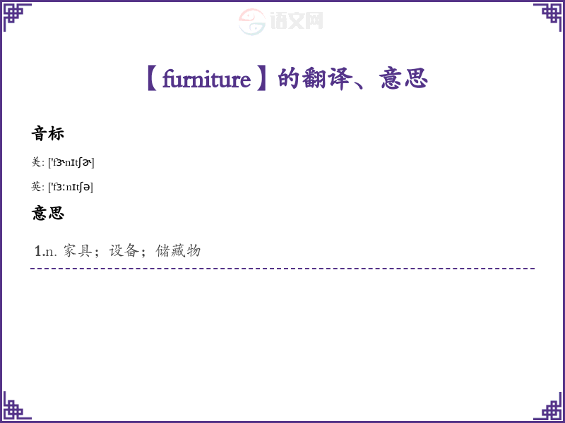 - 了解“furnire”(供给)这个拉丁词根,帮助记忆“furniture”的意思为“提供居住或工作所需的物品”。