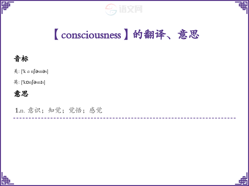 - 谐音联想记忆:将“consciousness”与“看清世界”联想,帮助记住对事物的意识。