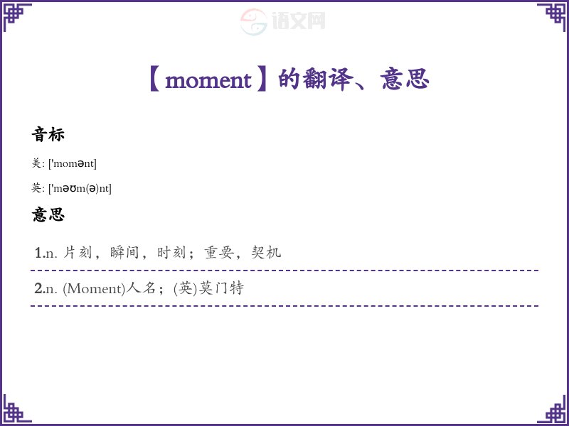 通过以上分析,可以帮助学*者更深入地理解和使用单词“moment”。