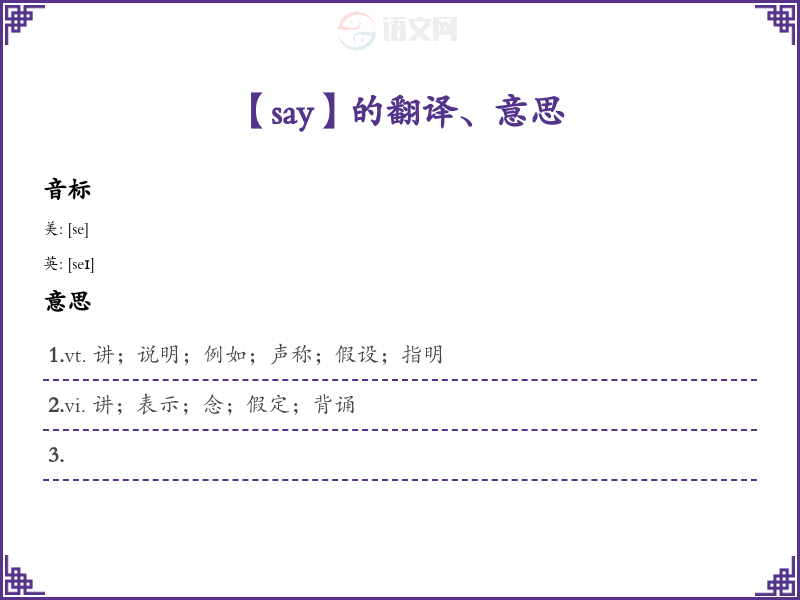 - 字面意思:动词“say”意为“说”或“表达”,通常用于口头或书面交流中。