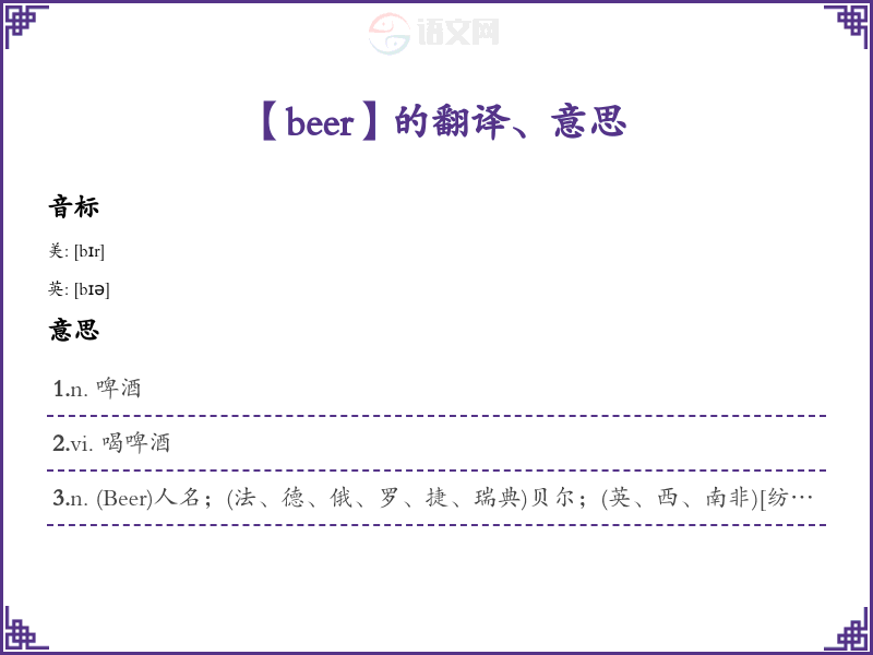 【beer】是什么意思、字义解释