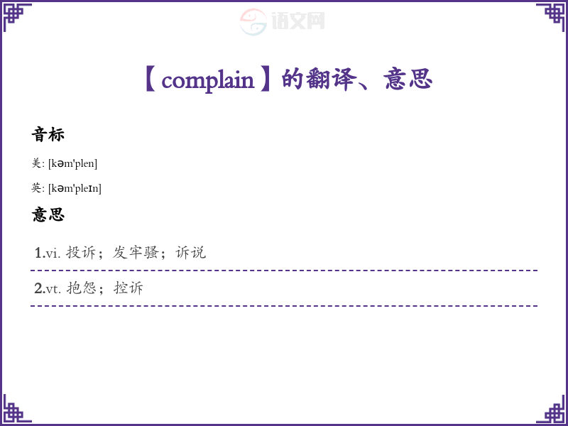 - 音标:[kəmˈpleɪn]