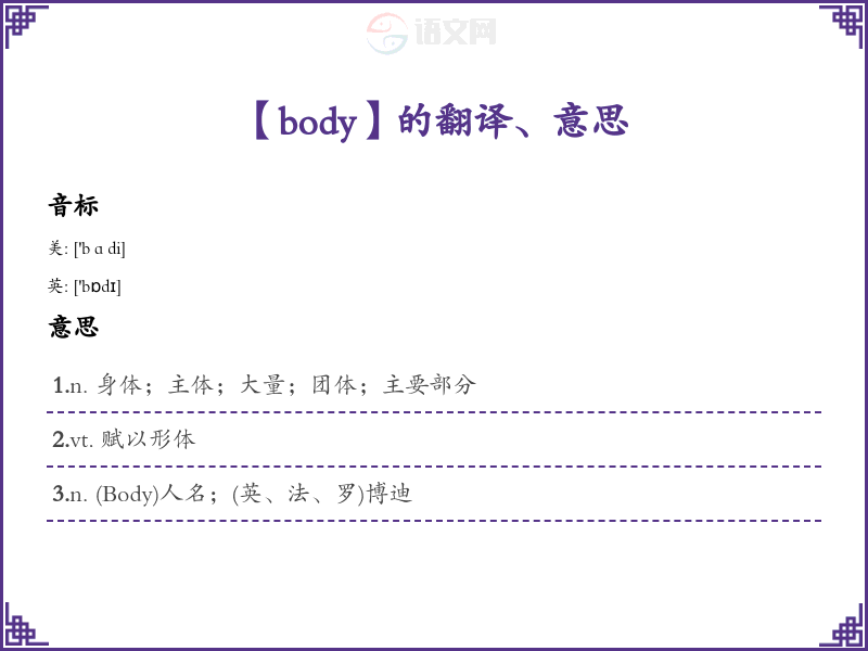 通过上述分析,学*者可以更全面地理解和运用“body”这个单词。