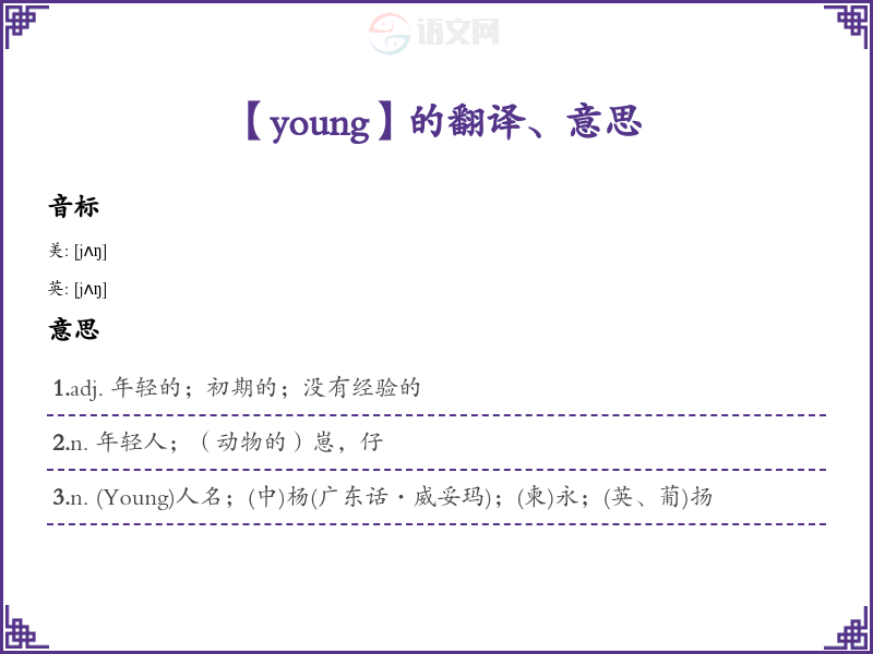 通过以上分析和学*方法,可以更好地理解和运用“young”这个单词。