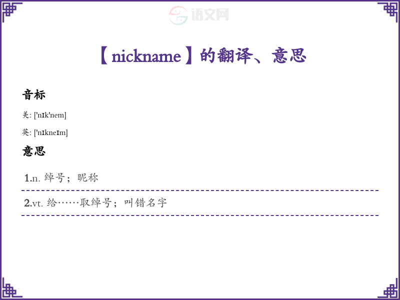 【nickname】是什么意思、字义解释
