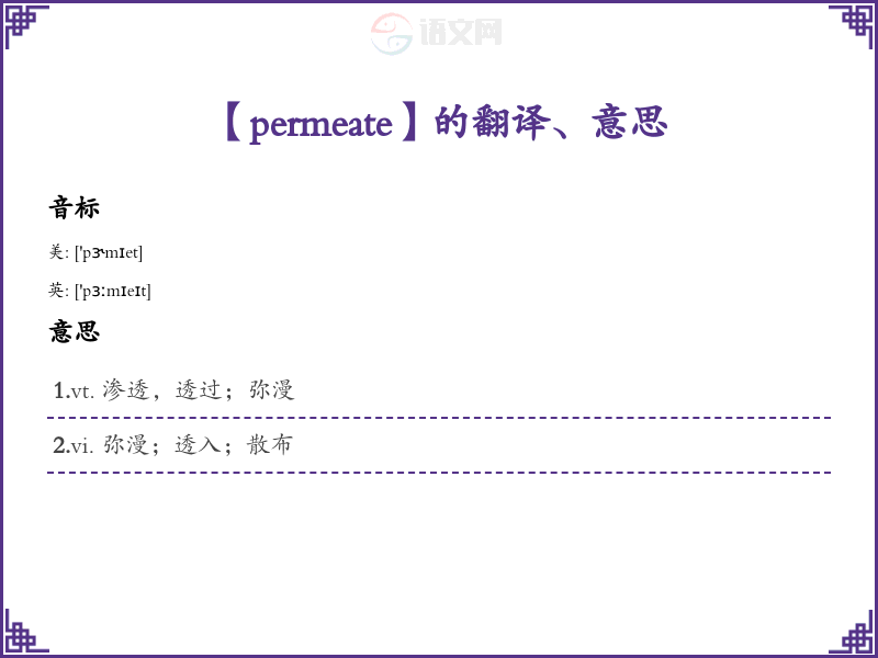 以上就是关于“permeate”这个单词的全面分析和学方法。希望这对你的学有所帮助!