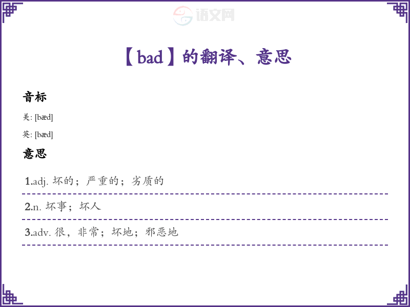【bad】是什么意思、字义解释