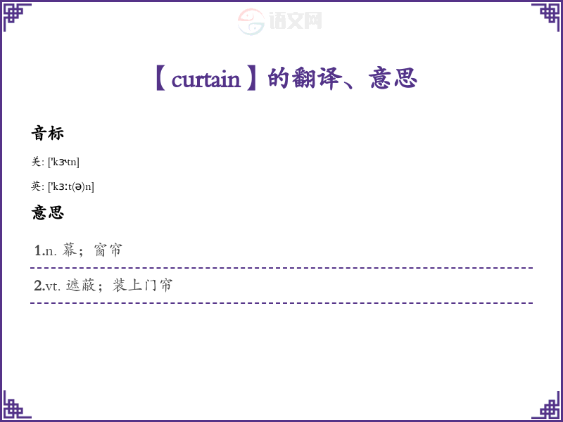 通过以上分析,学*者可以更深入地理解“curtain”这个单词的用法和意义。