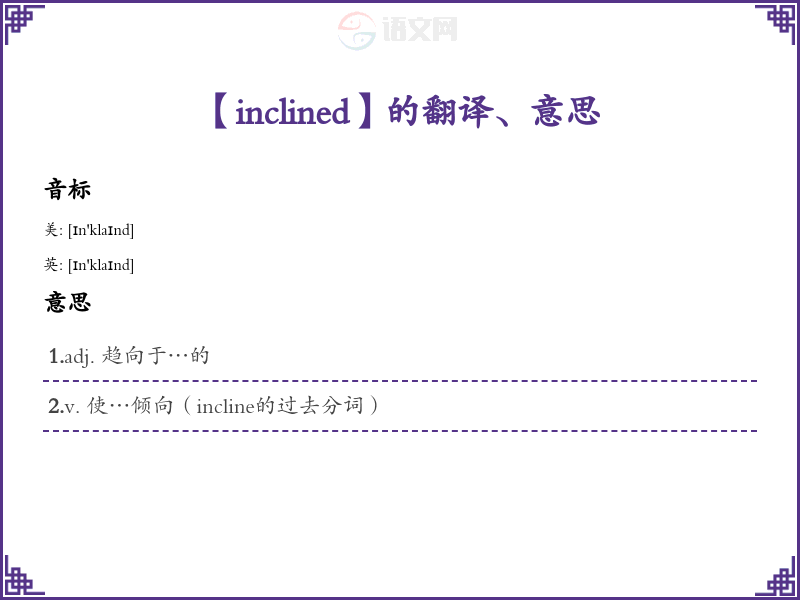 - 在*的英语教材中,inclined 通常出现在初中或高中的英语学中。