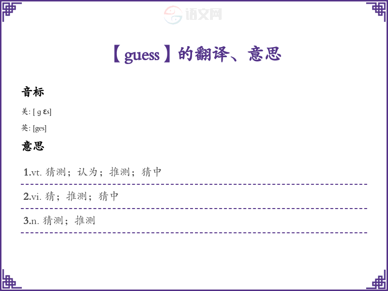 - 将“guess”发音与“guessing game(猜谜游戏)”联系起来,帮助记忆。