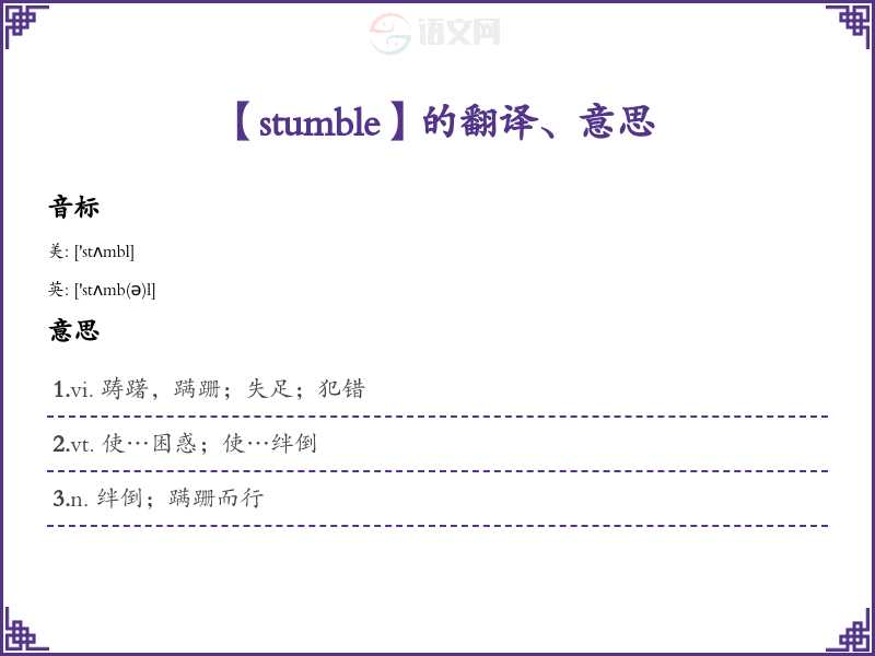 - 音标记忆法:stumble 的音标为 /ˈstʌm.bəl/,可以通过反复朗读和拼写,加深对单词的记忆。