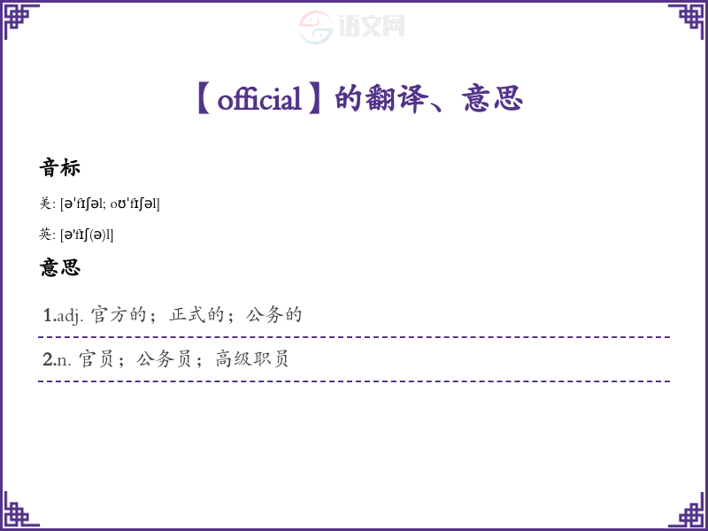 【official】是什么意思、字义解释