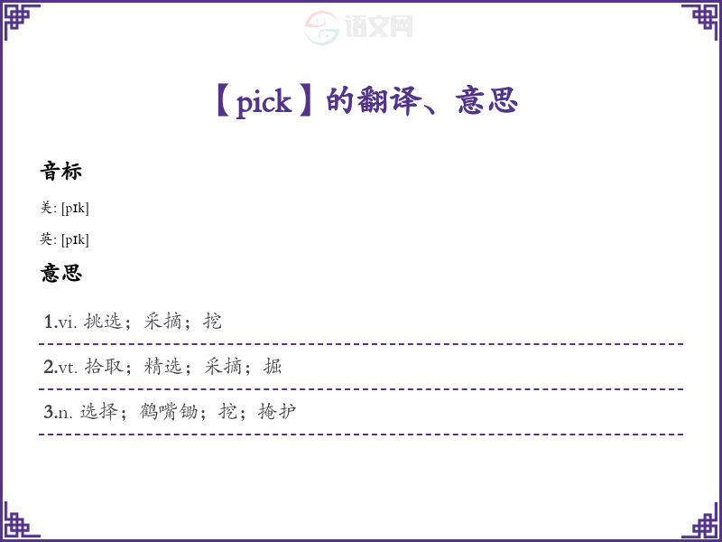 通过以上分析和示例,可以更深入地理解和掌握“pick”这个单词的用法和意义。