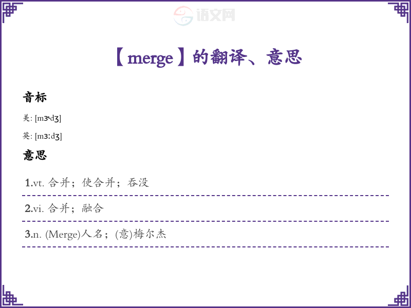 - 字面意思:字面上,“merge”指将两个或多个事物结合成一个整体。其定义为:将两个或多个物体、想法或组织合并为一个,通常在技术或商业上下文中使用。