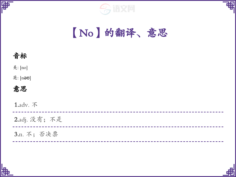 这个结构化的单词分析可以帮助学*者更好地理解和使用 “No” 这个词。