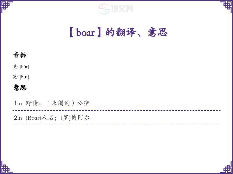 通过以上分析与学*方法,可以更深入地理解和掌握单词 "boar" 的含义与使用。