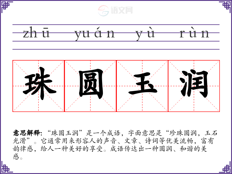 通过对“珠圆玉润”的学,我意识到这一成语不仅仅是对语言的赞美,更是对美的深刻理解。在语言学和表达中,追求和谐美感是提升沟通效果的重要方式。这一成语提醒着我在表达中要注重音韵的流畅与优美,提升交流的艺术性。