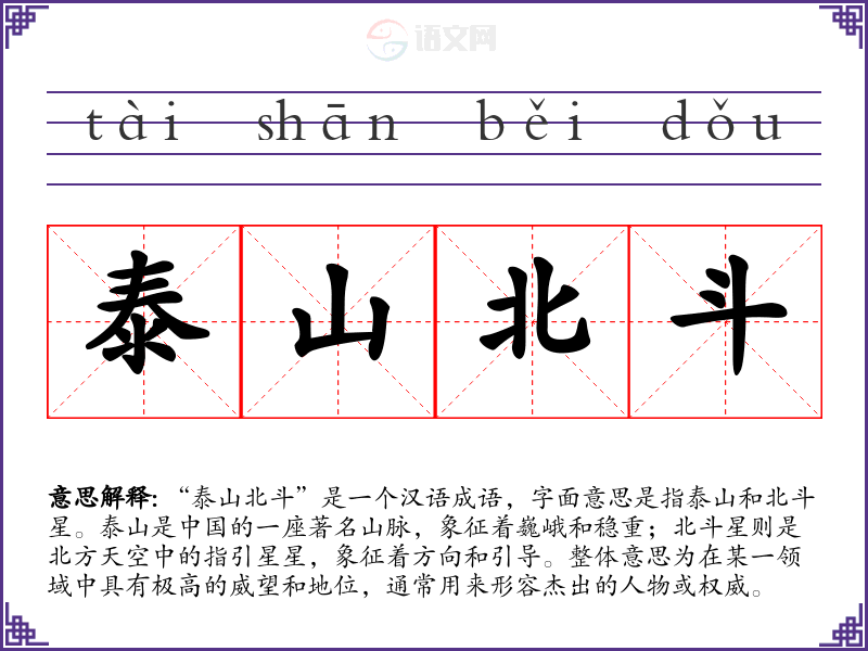 在**文化中,泰山和北斗星自古以来就被赋予了崇高的地位,反映了人们对自然的敬畏和对杰出人物的尊重。在现代社会,尤其是在竞争激烈的领域,能被称为“泰山北斗”的人往往是行业的领军者或思想的引领者,代表着创新和卓越。