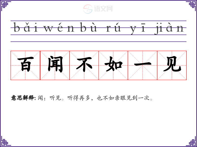 来源:-- 《荀子·儒效》:“闻之不若见之。”《汉书·赵充国传》