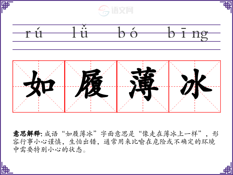 通过对“如履冰”的学,我更加明白了在生活和工作中谨慎的重要性。这个成语不仅丰富了我的语言表达,也让我在面对挑战时更加注意自己的态度和行为,增强了我的应对能力。