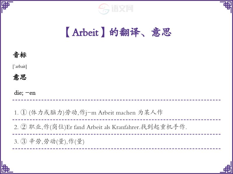 【Arbeit】是什么意思、字义解释