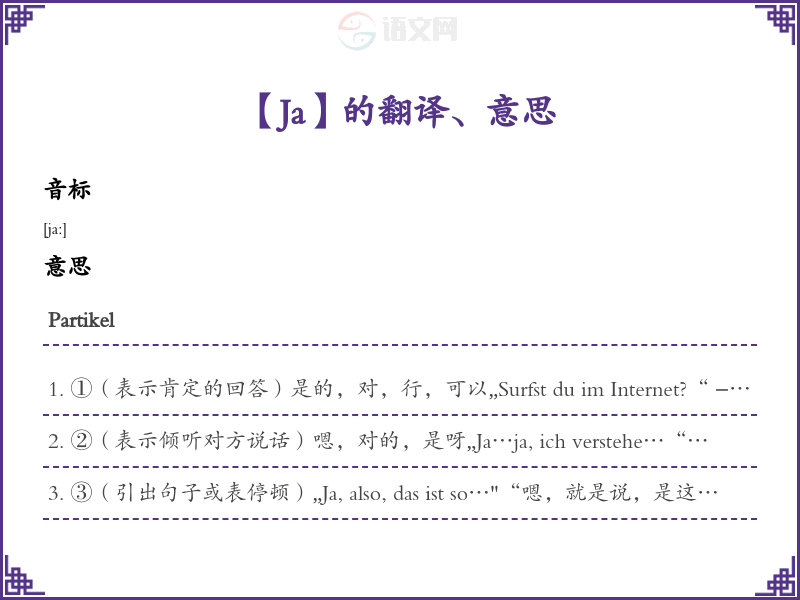 Ja德语的中文翻译、意思