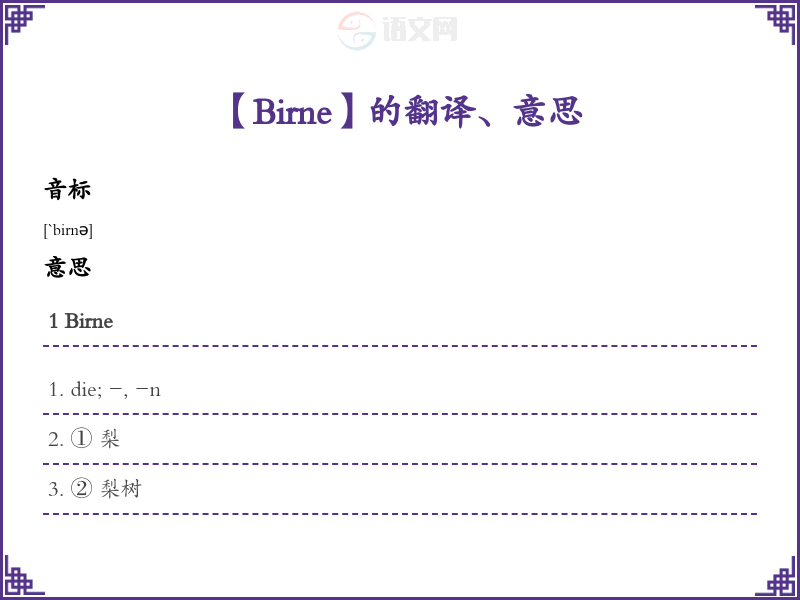 ③ 头,脑袋瓜子2 Birnedie; -, -neine Birne einschrauben 旋转,上eine kaputte Birne auswechseln 更换坏