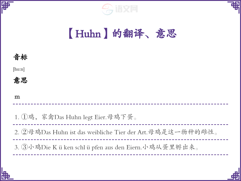 Huhn德语的中文翻译、意思