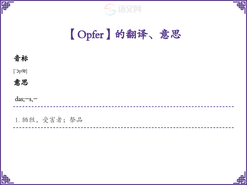 Opfer德语的中文翻译、意思