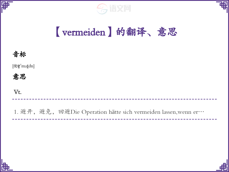 【vermeiden】是什么意思、字义解释