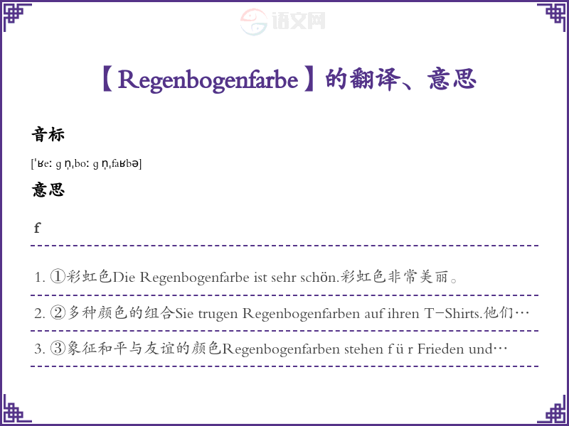 Regenbogenfarbe德语的中文翻译、意思