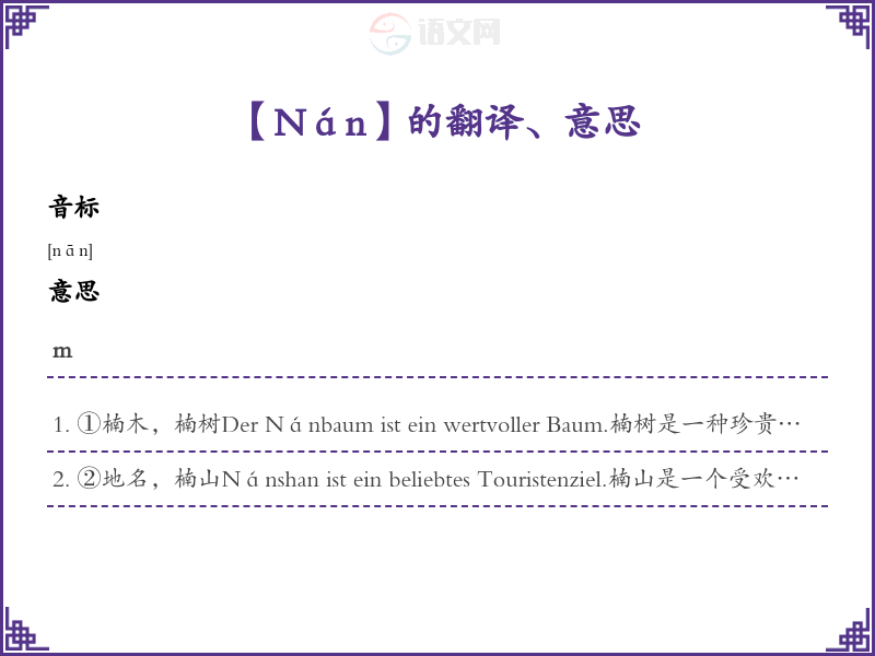 ②地名,楠山Nánshan ist ein beliebtes Touristenziel.楠山是一个受欢迎的旅游目的地。