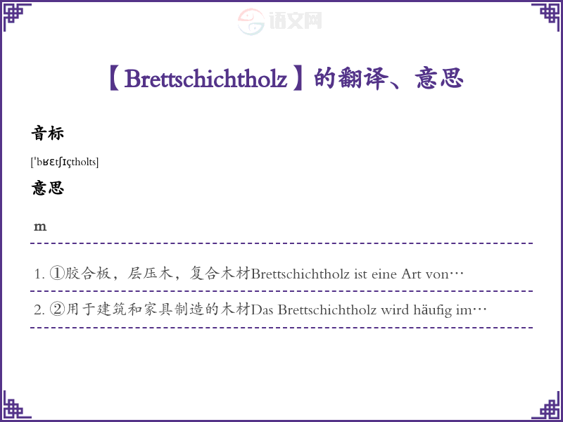 ①胶合板,层压木,复合木材Brettschichtholz ist eine Art von Holzwerkstoff.胶合板是一种木质材料。