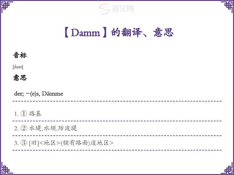 Damm德语的中文翻译、意思
