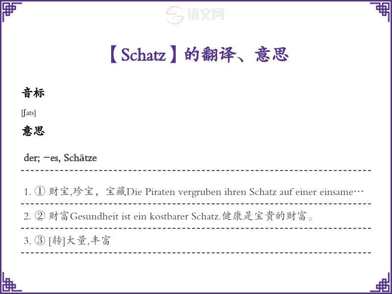 Schatz德语的中文翻译、意思