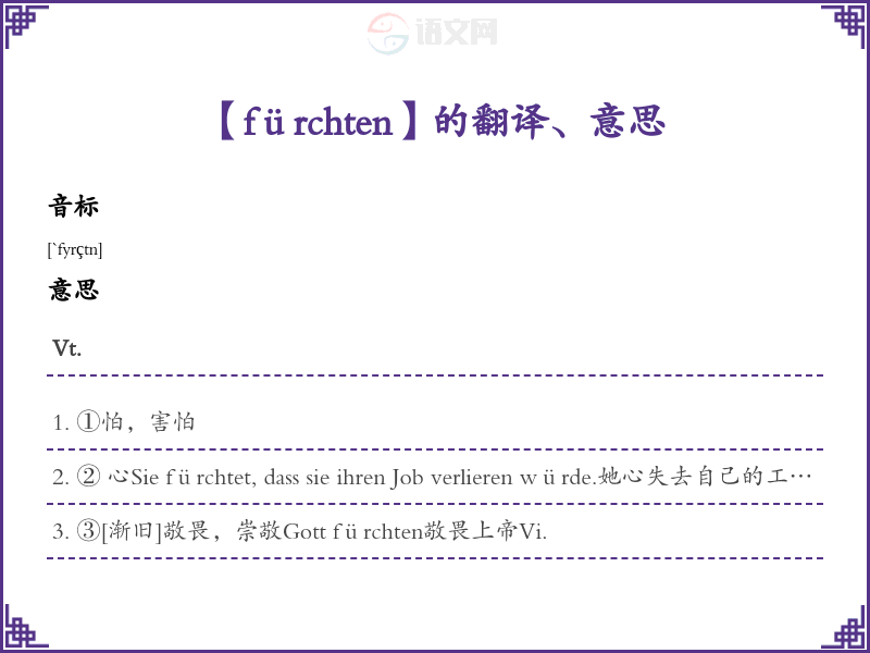 fürchten德语的中文翻译、意思