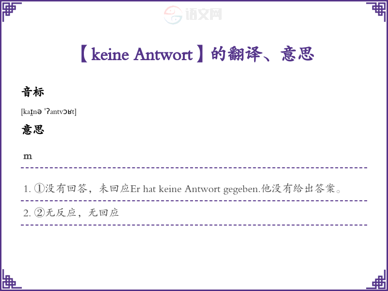 ①没有回答,未回应Er hat keine Antwort gegeben.他没有给出答案。