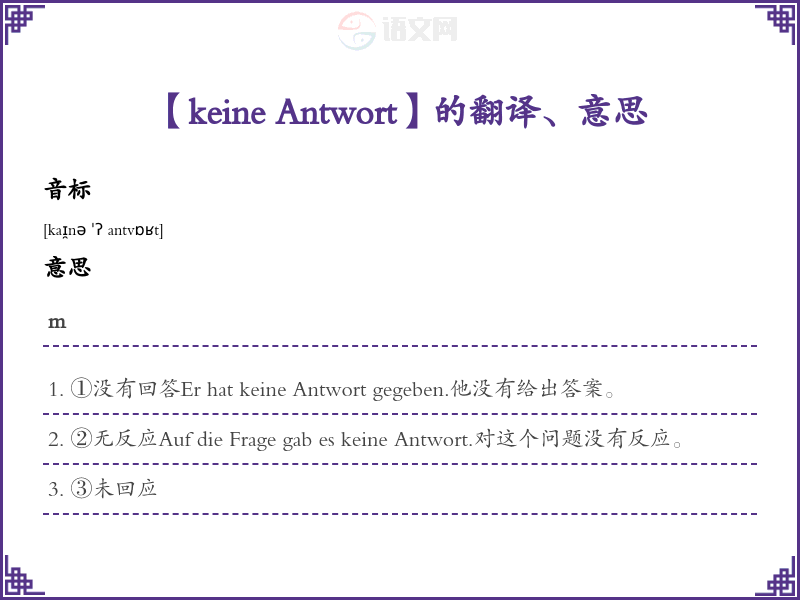 【keine Antwort】是什么意思、字义解释