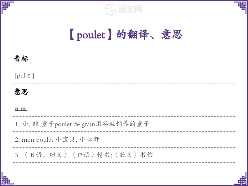 1. 小, 雏;童子poulet de grain用谷粒饲养的童子