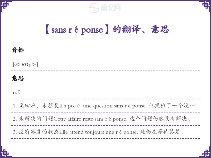 【sans réponse】是什么意思、字义解释