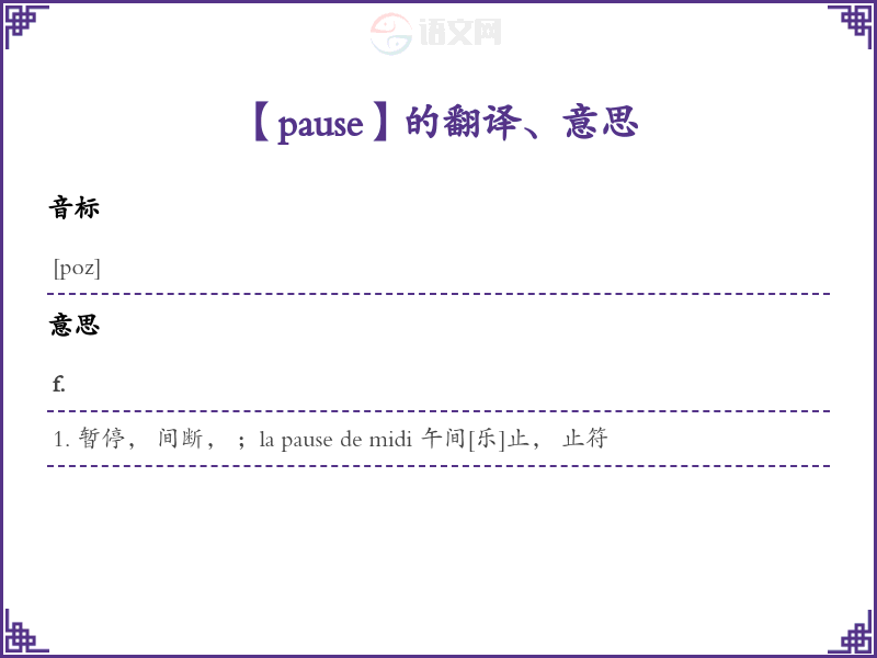 pause法语的中文翻译、意思