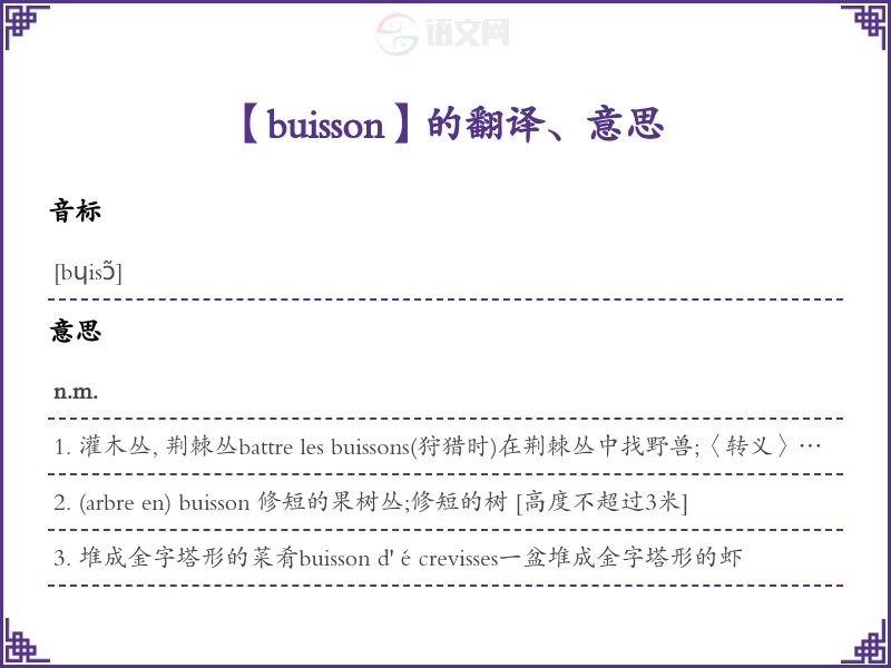 【buisson】 联想: 形容词变化: 近义词: 联想词