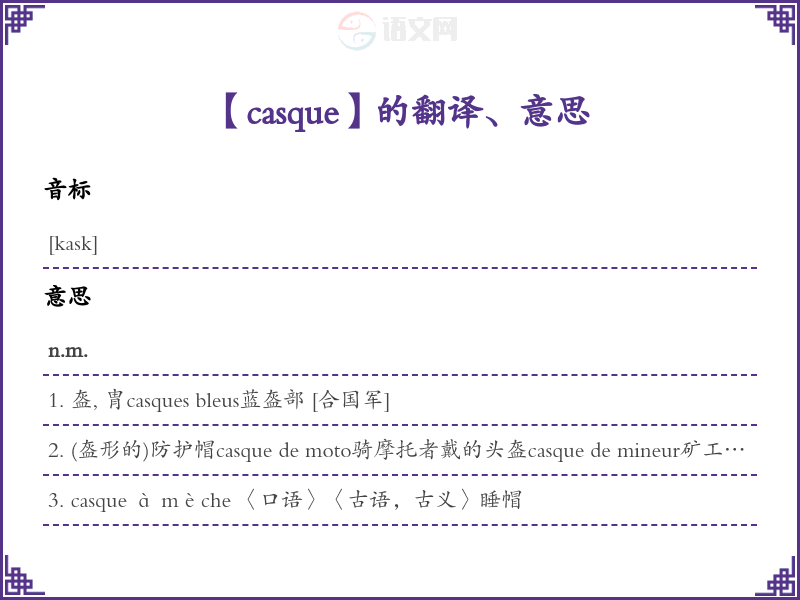 【casque】是什么意思、字义解释